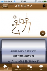 スキンシップを選択すると、上司がムカつく時のツボや、同僚が臭い時のツボなど、選べるシチュエーションがマニアック過ぎます。