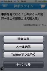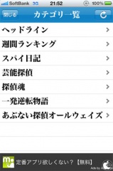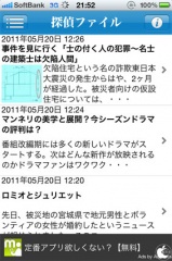 2011年05月20日(金) iPhone App Store#iPhone#iPod_touch#探偵ファイル ブレイブソフト、探偵ファイル公式アプリ「探偵ファイル」をリリース ※本サイトは、アフィリエイト広告および広告による収益を得て運営しています。購入により売上の一部が本サイトに還元されることがあります。 探偵ファイル ブレイブソフトが、iPhone/iPod touch用探偵ファイルアプリ「探偵ファイル」を、App Storeにて無料配付を開始しています。 探偵ならではの情報網を活かし、あらゆるジャンルを網羅したバラエティサイト「探偵ファイル」が見られるiPhoneアプリ版です。 アプリを起動すると、スパイ日記の記事が表示されます。 見たい記事をタップすると、該当記事が表示されます。 右上の吹出しアイコンをタップすると、読者の声、メール送信、Twitter投稿などが行えます。 トップ画面の左上ボタンをタップすると、表示される記事のカテゴリーを変更することが出来るようになっています。 ↓の評価ボタンを押してランキングをチェック!
