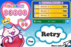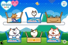 ゲームは、段ボール箱から現れる、つみネコのうち、子猫は1回、普通猫は2回、デブ猫は3回、指でフリックして撫でます。