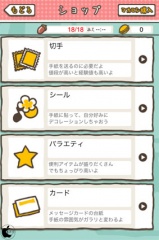 ショップでは、切手、シール、バラエティ、カードなどを、どんぐりで購入して追加することが出来るようになっています。