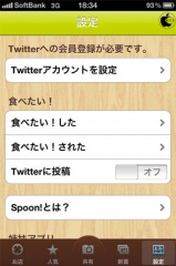 設定では、Twitterに、おいしい!を同時投稿する機能をオフにすることなどが出来ます。