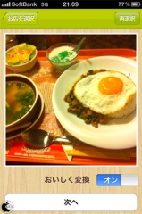 店内が暗くてあまり美味しそうに撮影できなかった写真でも「おいしく変換」フィルターを使って、美味しそうな写真に変換してくれます。