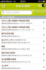 もし、今いるお店の情報が無かった場合、画面を下に下げると、上部に検索ウィンドウが表示され、そこでキーワード検索して探します。