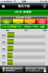 iPhone Webアプリ「電気予報(ベータ版)」のiPhoneアプリ版で、東京電力発表の実績値および日本気象協会発表のデータなどから推測値を算出し、いつ電力使用がピークを迎えるかの予報するアプリです。