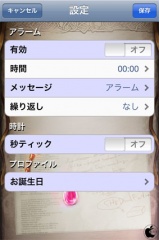 左上の時計アイコンをタップすると、アラーム設定したり、時計の時間と分の間の:を点滅させたり出来ます。