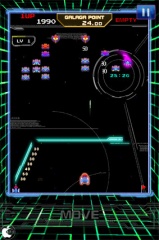 操作は、画面下のMOVEで指を左右に動かす事で、プレイヤー機を左右に移動することができ、画面をタップすることでシューティングが出来ます。