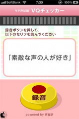 カヤックが、iPhone/iPod touch用モテ声度診断アプリ「VQチェッカー - モテ声診断」を、App Storeにて無料配付を開始していたので試してみました。
