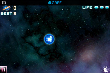ゲームは、画面の上から落ちてくる光りのタマを、指で画面をなぞってカットして破壊します。