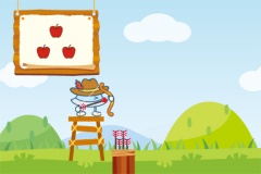 「おなじかずまとあて」は、“的あて”に挑戦!出題ボードに出たモノと同じ数の“的”をねらって矢を放つゲームです。