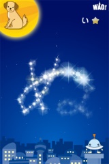 「きらきらもじ」は、絵の名前が夜空に浮かんでいるので、なぞっていくと星に変わります。