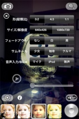 ・動画サイズ: 3:2 480x320, 4:3 480x360, 1:1 360x360