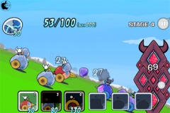 ゲームは、画面上のエネルギー数値をためて、ユニットを送り出せる数値になったら、画面下のユニットアイコンをタップして送り出します。