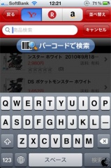 このアプリは、カメラを搭載したiPhone/iPod touch (4th generation)の場合、バーコードをカメラで撮影して、バーコード認識による検索も行う事が出来るようになっています。