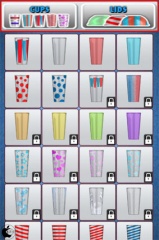 カップアイコンをタップして、画面上のCUPSとLIDSをタップし、好きなカップとフタを選択します。