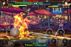 超美麗ハイレゾグラフィックで描かれた「THE KING OF FIGHTERS」の世界観をベースにしたゲームアプリで、バーチャルパッドの採用で、複雑なコマンド入力が必要な技も、簡易必殺技ボタンや各種タップ操作で簡単に出すことができます。