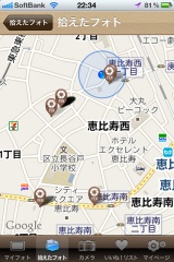 拾えたフォトをタップすると、現在地情報を取得し、他のユーザーが落とした写真がGoogleマップ上に表示されます。