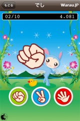 オープンスマイルが、iPhone/iPod touch用反射神経ゲームアプリ「じゃんけんちゃんタッチ」を、App Storeにて無料配付を開始していたので試してみました。