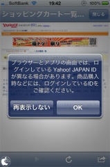 カート一覧は、フロントビューにブラウザー画面が立ち上がり、通常のYahoo!ショッピングサイトが表示されます。