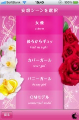 美形UPり。をタップすると妄想シーンを選択画面が表示されます。