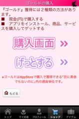 アイテム購入にはゴールドが必要で、アプリ内課金で購入するか、別のアプリをダウンロードしてゴールドの権利を獲得するかします。