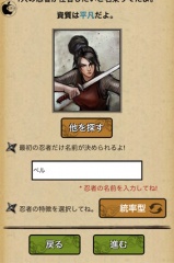 最初にプレイヤーが雇う忍者の名前や特製を決めます。