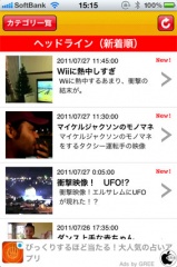 アプリを起動すると、ヘッドライン(新着順)としてピックアップされた動画タイトルがリスト表示されます。