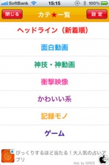 カテゴリ一覧をタップすると、面白動画、神技・神動画、衝撃映像、かわいい系、記録モノ、ゲームに変更することが出来ます。