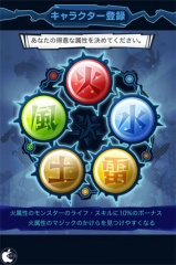 最初に「火、水、雷、土、風」の中から得意な属性を決定します。