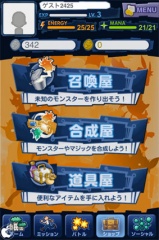 モンスターは、ショップで、召還屋を選択し、獲得したアイテムとゴールドを使う事で召還します。