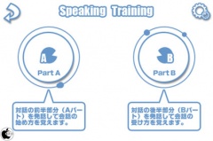 最初に対話の前半部分を発話して会話の始め方を覚える「Aパート」、対話の後半部分を発話して会話の受け方を覚える「Bパート」のどちらかを選択します。