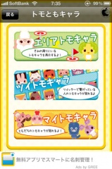 ともトモをタップすると、現在地情報を元に回りにいるトモキャラや、Twitterのフォロワーのトモキャラなどに友達申請して、トモキャラを広場に追加出来ます。