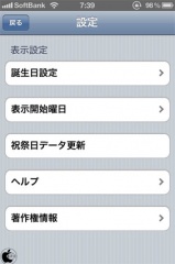 誕生日設定、表示開始曜日設定、祝祭日データの更新などを行う事が出来るようになっています。