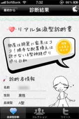 qurlabが、iPhone/iPod touch用血液型診断アプリ「リアル血液型診断」を、App Storeにて販売を開始していたので試してみました。