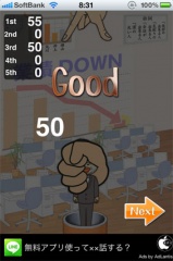 おやじが落ちてきたら、手のひらでキャッチ出来るよう画面をタップします。