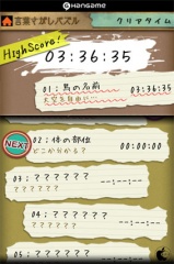 名前リストにある全ての名前を探す事が出来るとゲーム終了となり、かかった時間がスコアとなります。