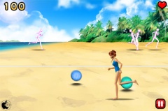 ゲームは、3Dの水着の女の子を選び、相手が投げるボールを本体を傾けて移動するか、画面をタップしてジャンプするかしてよけ続けます。