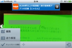 左下のリストをタップしてチェックシート解答を選択すると、画面上に緑のシートが表示され、マーカーを付けた部分が塗りつぶしされます。