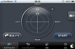車の走行前にSTARTボタンをタップして計測を開始します。