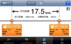 燃費は、給油の記録と満タン法による燃費値を計算することが出来ます。