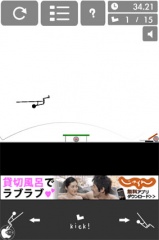 ゲームは、画面下のぶらんこをゆらす方向ボタンをタップしてゆらし、タイミングを見計らってKick!ボタンをタップしてくつを飛ばします。