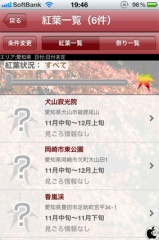 2011年09月13日(火) iPhone App Store#iPhone#iPod_touch#じゃらん紅葉特集 じゃらん紅葉特集アプリ「じゃらん紅葉特集」を試す ※本サイトは、アフィリエイト広告および広告による収益を得て運営しています。購入により売上の一部が本サイトに還元されることがあります。 じゃらん紅葉特集 リクルートが、iPhone/iPod touch用じゃらん紅葉特集アプリ「じゃらん紅葉特集」を、App Storeにて無料配付を開始していたので試してみました。 じゃらんの「紅葉情報2011」のiPhoneアプリ版です。 行き先から紅葉・祭りを探すをタップして、地域検索して紅葉名所と見ごろを見る事が出来ます。 見ごろ情報は10月から配信されるそうです。 地図から探すをタップすると、現在地情報を元にGoogleマップが表示され、紅葉名所や祭り開催場所などがアイコン表示されます。 それぞれのアイコンをタップして詳細情報を見る事も出来るようになっています。 ↓の評価ボタンを押してランキングをチェック!