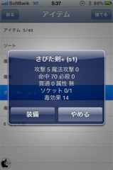 アイテムから獲得した武器や防具などを装備することが出来ます。