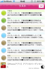リストをタップすると、近隣の犯罪情報が一覧表示されます。