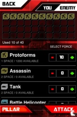 ProtoformsやAssasinなどのユニットをプラスボタンで追加して軍をつくり、ATTACKボタンをタップして戦闘を挑みます。