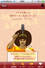 酔っ払いセンサーは、マイクに向かって診断キーワードを話すと、その声から酔っ払い度を表示してくれます。