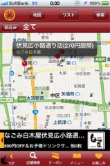 ピンをタップすると、お店の詳しい情報やクーポン、メニューなどを見る事が出来ます。