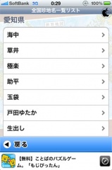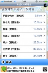 2011年10月04日(火) iPhone App Store#iPhone#iPod_touch#珍地名マップ 珍地名マップアプリ「珍地名マップ」を試す ※本サイトは、アフィリエイト広告および広告による収益を得て運営しています。購入により売上の一部が本サイトに還元されることがあります。 珍地名マップ AtoZ Labが、iPhone/iPod touch用珍地名マップアプリ「珍地名マップ」を、App Storeにて無料配布を開始していたので試してみました。 「面白い地名」「変わった地名」を地図と照らし合わせながら、実際の場所を確認して楽しむアプリです。 全国珍地名一覧をタップすると、都道府県別に珍地名が一覧表示されます。 近隣に住んでいる方には普通に思える地名も、他府県から見ると、笑える珍地名が結構あります。 お近くの珍地名をタップすると、現在地を元に珍地名が近い距離順に表示されます。 Googleマップ上で珍地名の場所を確認したり、行き方を調べたりも出来るようになっています。 ↓の評価ボタンを押してランキングをチェック!