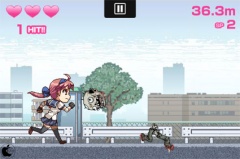 ゲームは、画面の左半分がジャンプ、画面の右半分がアタックに割振られていて、ゾンビを倒しながらひたすら走り続けます。