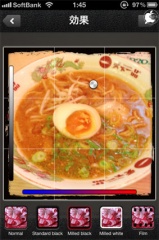 このアプリは、フィルター編集に特徴があり、パターンを選択したあとに画面を指でなぞると明るさや色調整を行う事が出来ます。