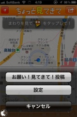 @nifty:デイリーポータルZ「ちょっと見てきて」のiPhoneアプリ版で、気になるあの場所を誰かに見てきてもらうアプリです。